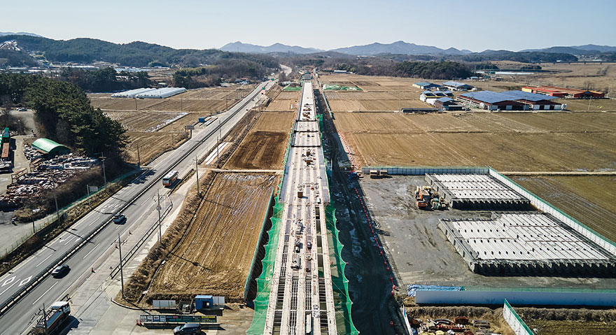 현재 장항선 개량 2단계 1, 2공구 사업은 목표 공정률에 맞춰 순조롭게 진행되고 있다. 1공구는 주요 구조물 공사가 활발히 진행 중이며, 2공구는 성토 및 교량 기초 공사가 집중적으로 진행되고 있다. 2공구의 경우 말뚝 기초 공법을 기존 강관말뚝에서 ICP 복합말뚝으로 변경해 시공성을 개선하고 자재 수급을 안정화하는 등 효율적인 공정 관리를 통해 목표 일정에 맞춰 사업을 추진하고 있다.