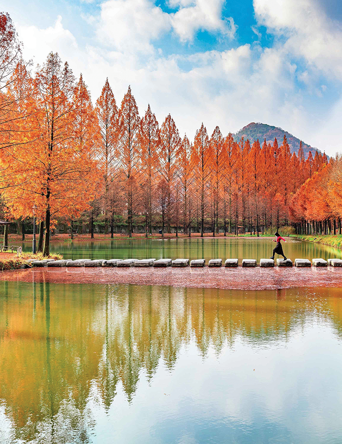 담양천을 따라 자리한 관방제림은 수령 수백 년을 자랑하는 느티나무와 팽나무가 울창하게 들어선 숲으로, 천연기념물 제366호로 지정돼 있다. 바로 옆으로 이어지는 메타세쿼이아길은 전국에서 손꼽히는 가로수길로, 가을이면 황금빛과 붉은빛이 어우러져 끝없이 이어진다. 바람에 흩날리는 낙엽 사이를 걷다 보면 숲의 깊은 향기와 함께 담양이 ‘한국의 가을 산책 명소’로 불리는 이유를 온몸으로 느낄 수 있다.