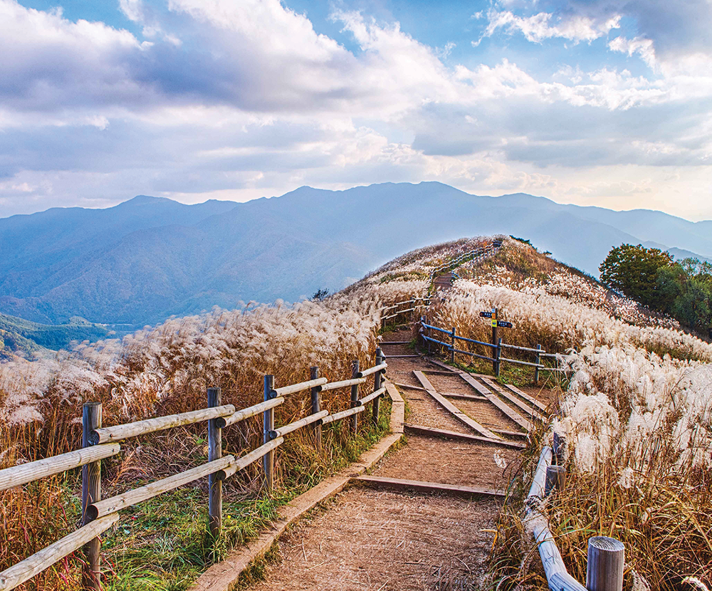 민둥산은 우리나라 5대 억새 군락지로 꼽히며, 가을이면 정상부가 은빛 억새로 끝없이 덮인다. 매년 9~10월에는 ‘민둥산은빛억새축제’가 열려 수많은 등산객이 찾는다. 바람에 따라 억새가 출렁이면 은빛 물결이 능선을 타고 흐르고, 산 아래에는 붉은 단풍이 병풍처럼 겹겹이 둘러선다. 은빛과 붉은빛이 동시에 어우러지는 풍경은 오직 이 계절, 이 산에서만 만날수 있는 장관이다.