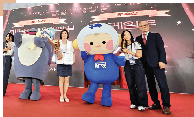 이성해 이사장은 “이번 수상은 국민과 더욱 가까이 소통하기 위해 공단이 추진해 온 다양한 노력을 인정받은 값진 성과”라며, “앞으로도 캐릭터를 활용해 국민에게 친근하게 다가가며 철도의 가치를 널리 알리기 위해 노력하겠다”고 소감을 전했다.