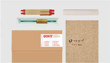 보킷은 발달장애인과 비장애인이 함께 제품을 만드는 패키지 브랜드다. FSC인증 재생지로 만든 노트, 재생 신문지로 만든 연필, 폐나무 분말로 만든 연필깎이와 떡메모지, 종이 볼펜, 천연고무 지우개 등의 구성으로 이루어진 친환경 문구세트를 판매한다.