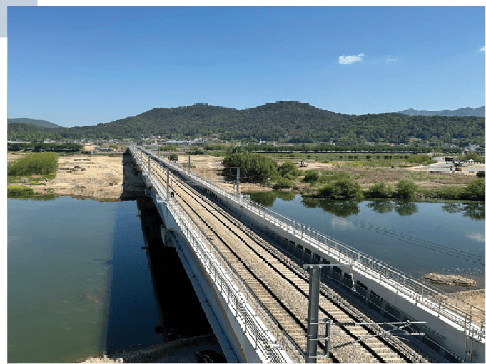 국가철도공단은 총사업비 약 1,000억원을 투입하여 기존 교량 사이에 약 700m 규모의 복선 신설교량을 건설하는 ‘경부선 밀양강 철도교량 개량사업’을 성공적으로 완료했다. 기존 밀양강 철도교량은 하선이 1903년에, 상선이 1945년에 준공된 120년 이상 지난 노후 교량으로, 열차 운행 시 소음이 크고 교각 간격이 좁아 홍수에 취약한 문제가 있었다. 공단은 이번 개량 사업에 국내 최장경간 하로형 철도 교량*을 적용함으로써 열차 운행의 안정성을 높이고, 홍수위 확보 및 유지관리 효율을 대폭 개선했다. 또한, 사업 구간 중 하나인 밀양시 용평 지하차도는 상습 정체 구간이었으나 이번에 4차로로 확장해 오랜 주민 숙원이었던 병목 구간을 해소하고 지역 교통 흐름 개선과 시민 생활 편의 증진에 기여했다.