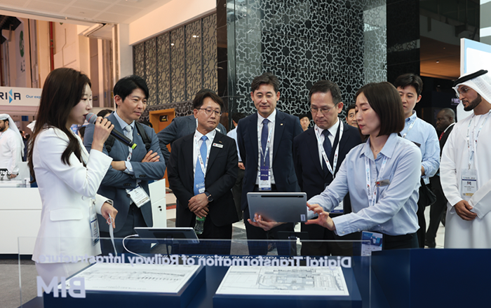 UAE 아부다비 국제전시회관(ADNEC)에서 2025년 9월 30일부터 10월 2일까지 사흘간 열린 ‘Global Rail 2025’는 100여 개국, 300개사 이상이 참여한 대규모 모빌리티 콘퍼런스다. 에티하드 레일(Etihad Rail)이 주최한 이번 행사에서 국가철도공단은 코레일·현대로템·에스트랜스포트와 함께 ‘K-철도 한국관’을 공동 운영해 국가 철도 기술의 저력을 한자리에서 선보였다. ‘From Seoul to the Soul of UAE’를 주제로 한 한국관은 총 160㎡ 규모로, 이 중 공단이 136㎡(전용+공용)를 담당하며 메인 전시를 이끌었다.