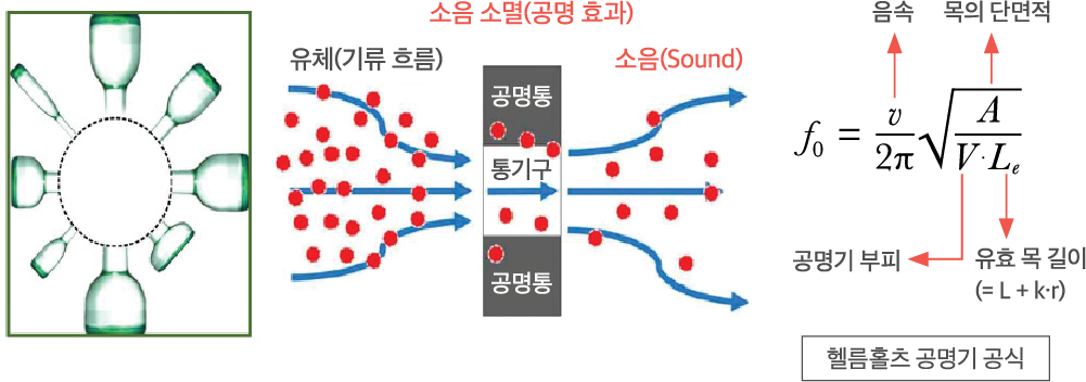 1. 차음 : 소음 잡는 능력, 기본부터 완벽하게!기존 방음벽은 소리를 반사하거나 흡음재(유리섬유 등)를 사용해 소리를 흡수하는 방식으로 소음을 막아 왔다. 이와 다르게 ‘풍하중 저감 흡음형 방음 패널’은 내부에 헬름홀츠(Helmholtz) 공명 원리를 적용한 공명부를 설계했다. 벌집처럼 설계된 패널 내부의 공명부에 소리가 들어가면, 소리끼리 부딪쳐 스스로 사라지게(상쇄) 된다. 이는 기존 기술과 동등하거나 더 우수한 수준의 소음 저감 성능을 확보한다. 차음 성능 결과 500Hz에서 26.3dB, 1,000Hz에서 34.8dB이라는 뛰어난 성능을 입증하며, 방음벽 본연의 임무인 소음 차단에서 완벽한 능력을 보여줬다.