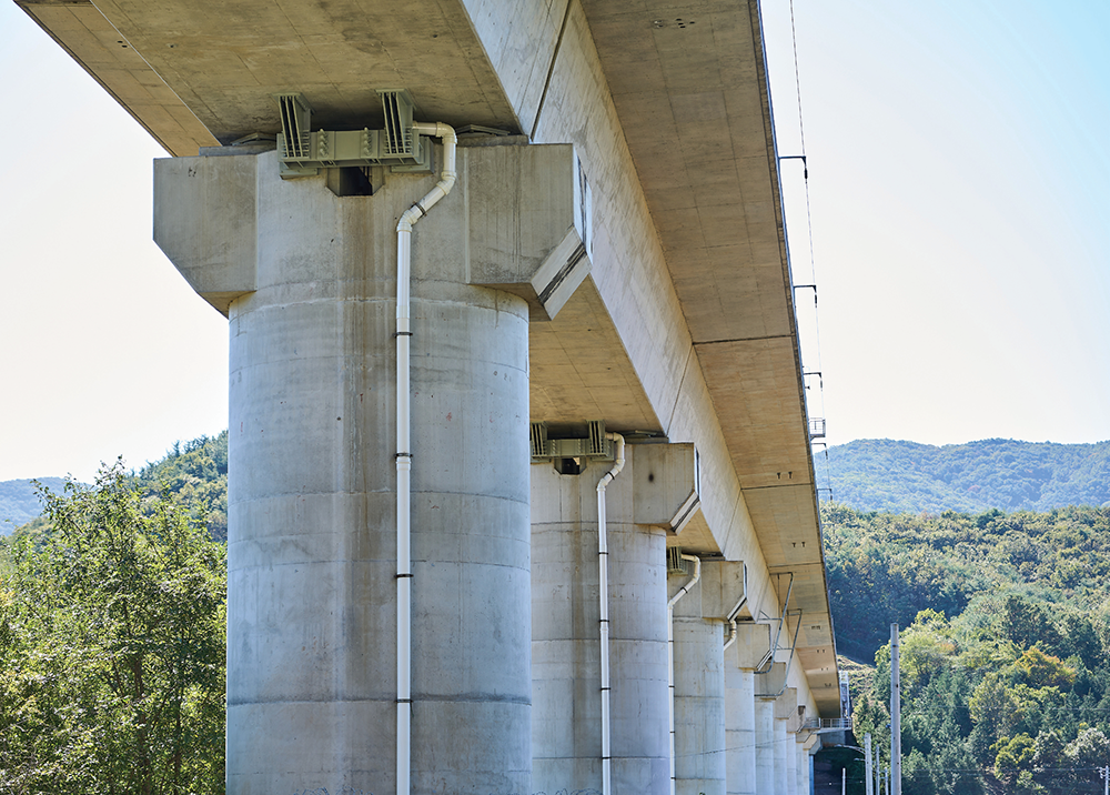 이번 공사는 경부고속철도 제2단계 구간인 동대구~부산 103.6km 구간에 걸쳐 총 16개 교량에서 진행된다. 그중 방내고가는 기초까지 보강이 필요한 복합손상 구간으로 분류되어 받침보호장치와 기초보강을 병행하는 방법이 적용됐다. 나머지 15개 교량은 단순손상 구간으로 교량받침보호장치 설치 공법이 적용되었으며, 운행 중인 고속철도의 가동을 멈추지 않고 진행되는 인접선 공사라는 점에서 기술적, 안전적 난이도가 모두 높다. ‘지진에도 끄떡없는 교량, 흔들림 없는 철도’를 목표로, 오늘도 현장은 안전과 기술의 두 축을 균형 있게 이어가고 있다.