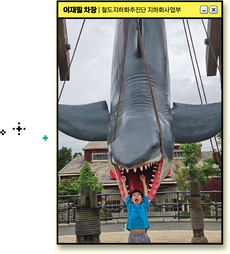 바쁜 일상에서 잠시 ‘정차’하고 가족과 오사카 유니버설스튜디오로 떠난 날. 죠스 앞에서 아이의 깜짝 비명은 우리 모두의 웃음과 환호로 바뀌었습니다. 무섭고 거대한 이빨도 안전하면 즐거운 연출이 되듯, 우리가 만드는 철도도 보이지 않는 계획으로 사람들의 여행을 기쁨으로 바꿉니다. 이 한 장에 올해의 쉼, 가족의 웃음, 그리고 제가 하는 일이 가진 의미를 함께 담았습니다.