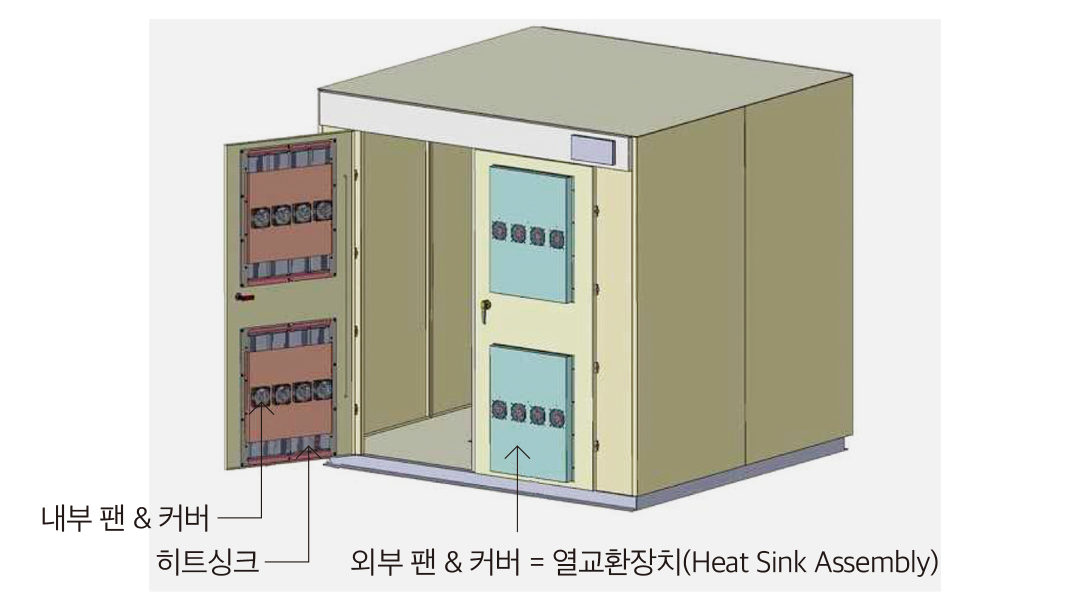 이 기술은 고장의 원인이 되는 오염물질의 통로를 설계 단계부터 차단한다. 밀폐형 전장품 외함은 기존 외함의 환기구와 팬을 없애고, 문과 패널의 이음새, 케이블이 들어오는 입구(인입부) 등을 특수 씰링 처리한다. 이는 외함 전체를 IP65 수준의 거대한 ‘진공 밀폐 용기’처럼 만드는 과정이다. 그런 후 숨구멍이 막혀 뜨거워진 내부를 식히기 위해 앞서 설명한 열교환장치(Heat Sink Assembly)를 결합한다. 특히 현장 점검의 편의성을 위해 열교환장치를 외함 문(Door)에 모듈 형태로 단다. 마치 가전제품의 부품을 갈아 끼우듯, 문제가 생기면 장치 전체를 간편하게 점검하거나 교체할 수 있다. 옥외 설치 시에는 직사광선을 막아주는 차광장치(선셰이드)를 지붕과 측면에 덧대어 열 차단 효과를 극대화한다.