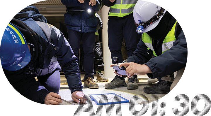 동이 트기 전의 북삼역을 뒤로하며 점검반은 철수 준비를 서두른다. 모두가 잠든 밤사이, 보이지 않는 곳에서 묵묵히 자를 대고 수평을 맞추는 이들이 있기에 2026년 2월, 북삼역을 이용할 수천 명의 시민은 안심하고 열차에 몸을 실을 수 있을 것이다. 그렇게 안전이라는 이름의 철길은 그렇게 한 땀 한 땀 완성되고 있었다.