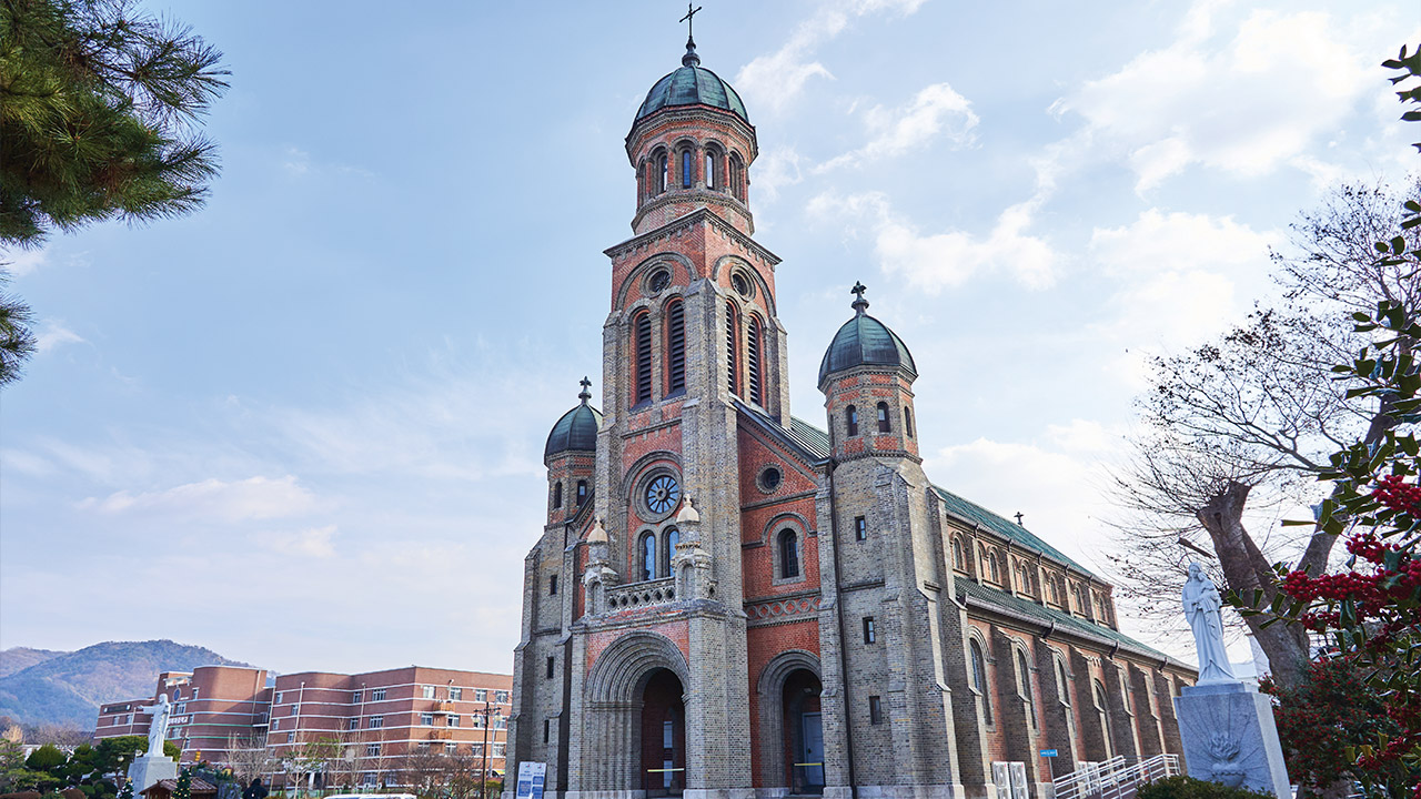 호남에서 가장 오래된 로마네스크 양식 건물로 한국의 3대 아름다운 성당으로 꼽히는 곳. 외부뿐 아니라 실내 스테인드글라스의 아름다움 감상하기.